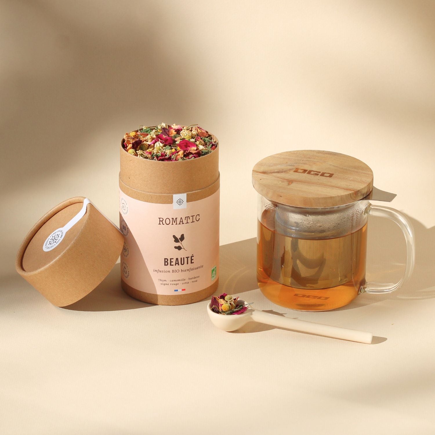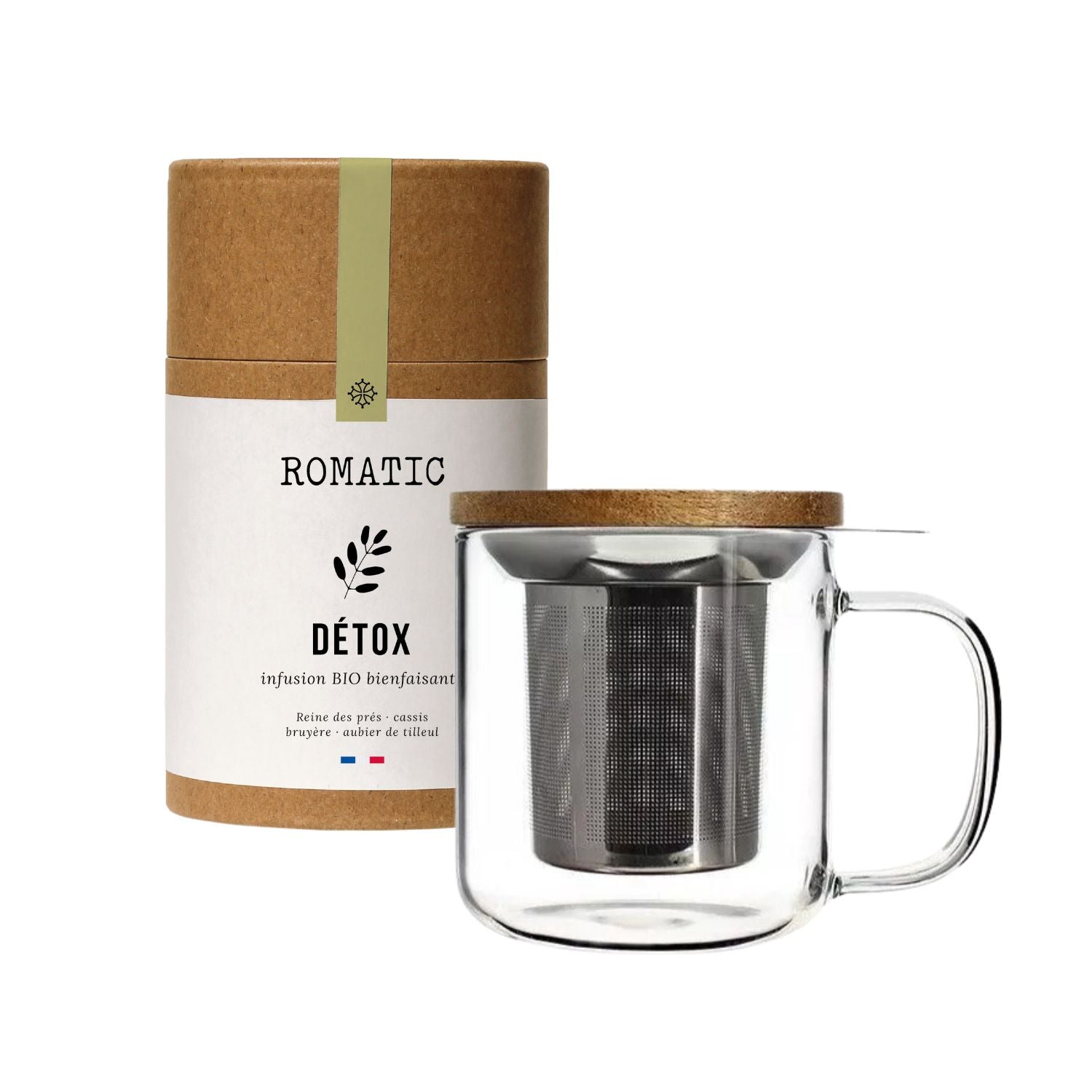 Une infusion bio au choix parmi nos 10 références et une adorable tisanière filtre de 300 ml.