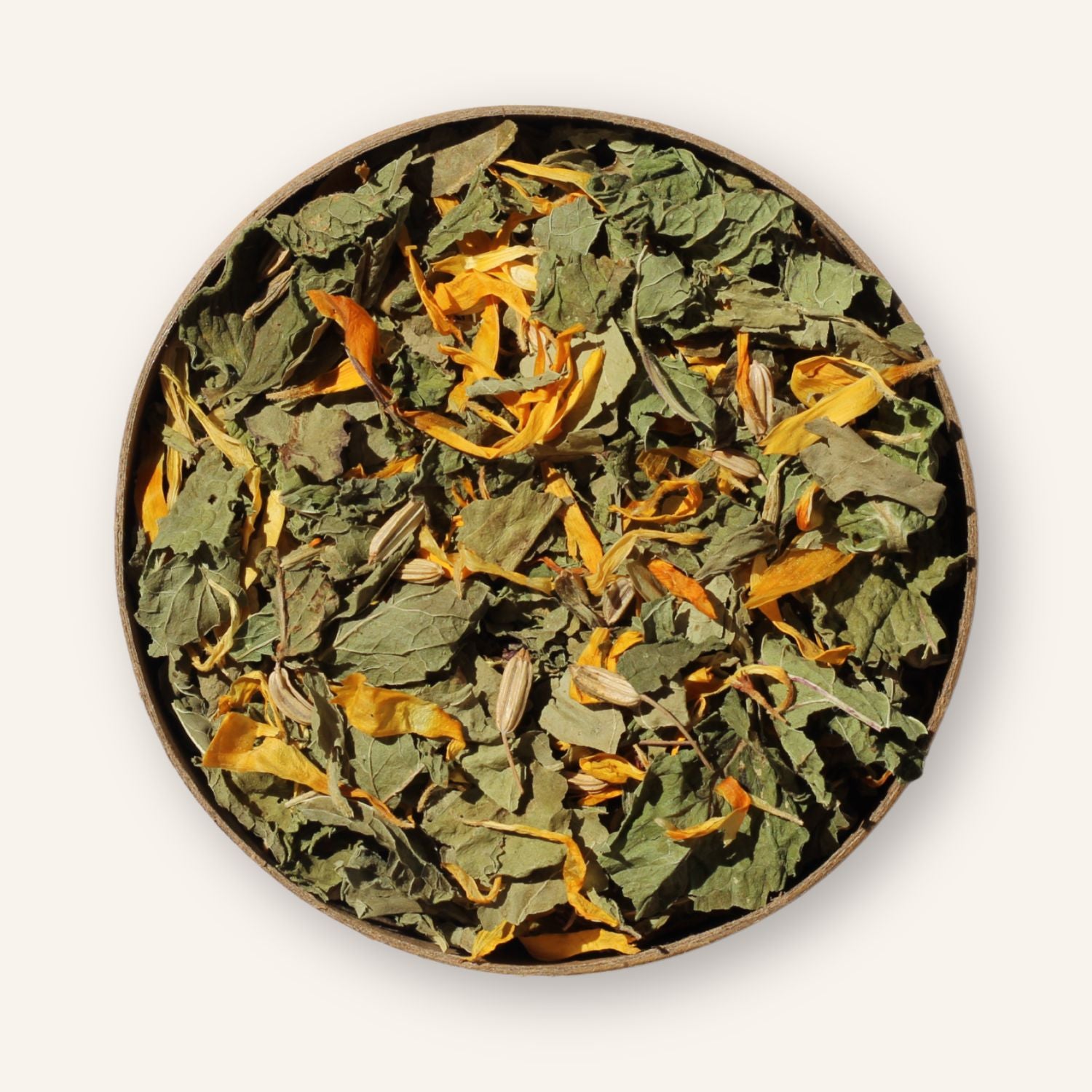 Menthe verte*, graine de fenouil*, pissenlit*, fleurs de souci*